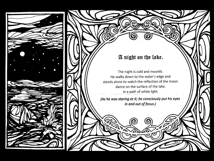 Below : Animation of a drawing from the book with the poem written for it : " A night on the lake."