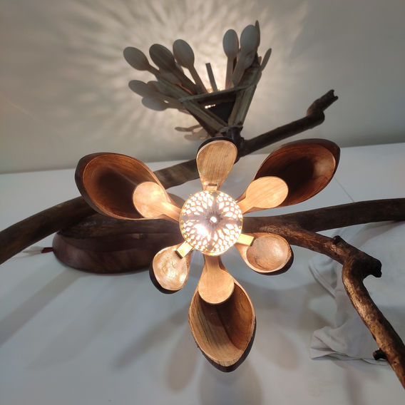 BELOW : A "Kirigami" concept light resolved in plywood (finished with polish) which uses LEDs for illumination.
